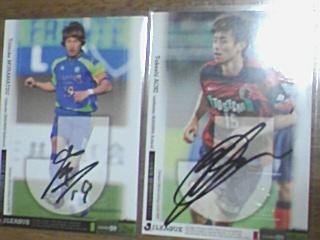 月2~3回の更新ペースとなってしまいました。 こんなブログですが来てくださる方、ありがとうございます。 J1のTEが発売されました。 先週の日立台で先行発売されたので、1箱買ってきてもらいました。 目指すはフランサの直筆。 5、6パック開けたところで、厚いカードが真ん中に・・・ 祐三のジャージでした。 意気消沈で残りのパックを開けていると12~15パック目に・・・ あれ?裏面のデザインが違う! 画像はありませんが、 なんと古賀正紘の直筆が出現! フランサではないにしろ、なんと古賀が出るとは・・・(書いた枚数は多いですが) よし、J09の古賀直筆をゲットするぞ! さて次回更新は下旬か(ネタがあれば)? |