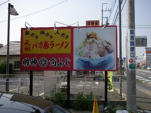 その代わりつけ麺を食べたけど、どうもつけ麺類は途中で飽きるな・・・ 昨日のリベンジで再度チャレンジ・・・ あれ、準備中の札が・・・_| ̄|○ (写真は昨日の) どうりで車が1台もいないと思ったら、臨時休業らしい。 しかたがないので、明神角ふじに向かう。 本日は、ふじ麺+大盛り(300g)+小ブタ。 ふじ麺は野菜(ほとんどもやし)がチョモランマ状態が基本だと思うが、ここはこの看板の半分くらいの量。 ただしマシ(増し)で頼めばこのくらいなるみたい。 前回の小ブタは薄っぺらのが乗ってきたが、今回は厚いブタがちゃんと乗ってきた。 でもやっぱりしょっぱい。 スープは前回よりはマイルドで食べやすいと思っていたら、麺が少なくなるにつれ濃い層が麺に絡み始めて・・・ やっぱりしょっぱい でもこの極太麺はくせになるよな。 近いうちに本家の二郎店に行ってみよう。