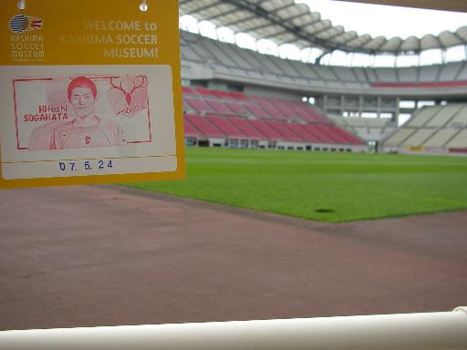 やっぱり、 1箸目で麺がすくえるなんてふじ麺じゃない! とだけ申しておきましょう。 その後は時間が早かったので、行きそびれてたカシマサッカーミュージアムへ。 その前に一般開放しているスタジアムに入るが、 人っ子ひとりいないので違う場所に入ったんじゃないか? と激しく不安になりながらスタンドを堪能。 お目当てのミュージアムに入館すると受付のお嬢様が、 パスに大変丁寧にスタンプを押して下さいました。 それがこの写真。 う~ん、よりによってアゴか・・・ このミュージアムは展示スペースが狭いものの、アントラーズ中心(当たり前か)の展示物でなかなか見入ってしまいました。 なおピッチには入れませんが、近くまで行けます。 来年は試合観戦でここにこれるのかなぁ・・・ (ちくしょう、平塚の写真はほとんどピンぼけだ) PR