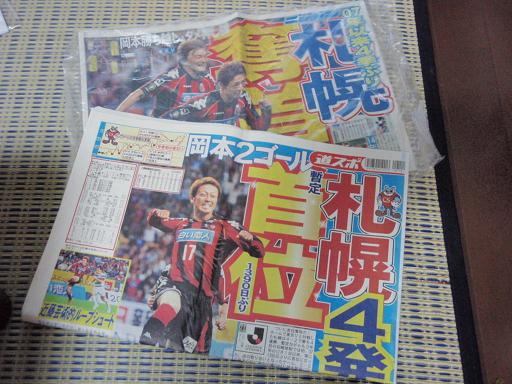 台風の影響もなく、無事帰宅です。 箇条書きに雑感を。 ・水曜日普通に仕事に行っていたら、帰宅難民の可能性大 ・結果的に台風の影響をまったく受けなく一番ラッキー ・っていうか、台風来てるのに札幌行くって神経おかしくね>俺 ・札幌は寒かった、でも2日前の方がもっと寒かったらしい ・前半はヒヤヒヤで押されっぱなし ・後半はだいぶ落ち着いたが・・・ ・宮澤早く復帰してくれ(ドームで握手してくれた) ・芳賀も早く復帰してくれ ・ヤス(岡本)は神×2 ・ホスンはたくましくなったな(遠い目) ・翌日の道新は一面コンサ ・なんと日刊も一面コンサ ・とりあえず日刊も神 ・80cmドーレくん予約完了 ・クリスマスが楽しみだ ・次は10月のボルタくん(徳島戦) ・暫定でも首位は首位!←これ重要 |