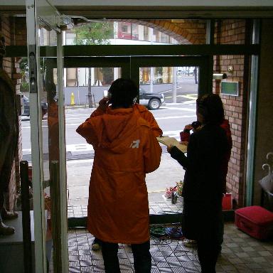 右側の女性はこのビルの社員さんです(その奥にスタッフの女性がいます)